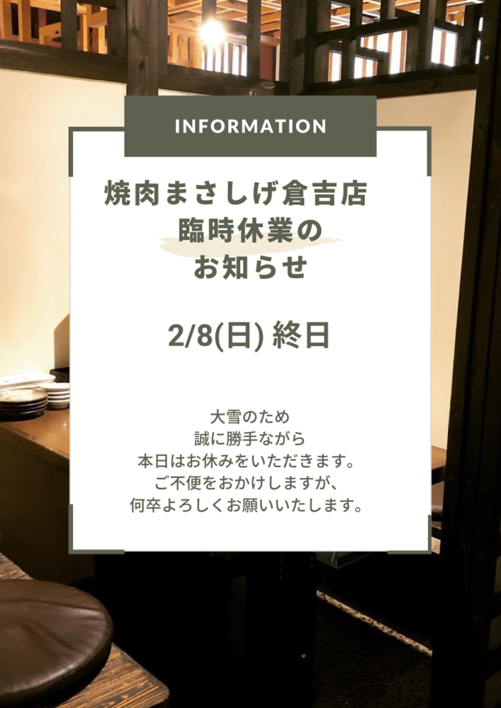 2/8(日)臨時休業のお知らせ